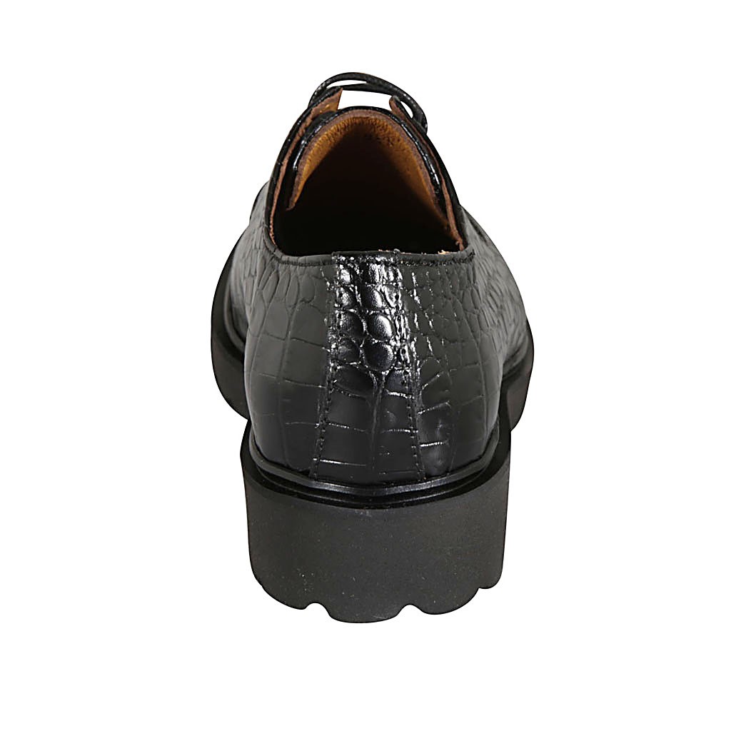 Chaussure derby à lacets pour femmes en cuir imprimé noir talon 3 - Pointures disponibles:  32, 42