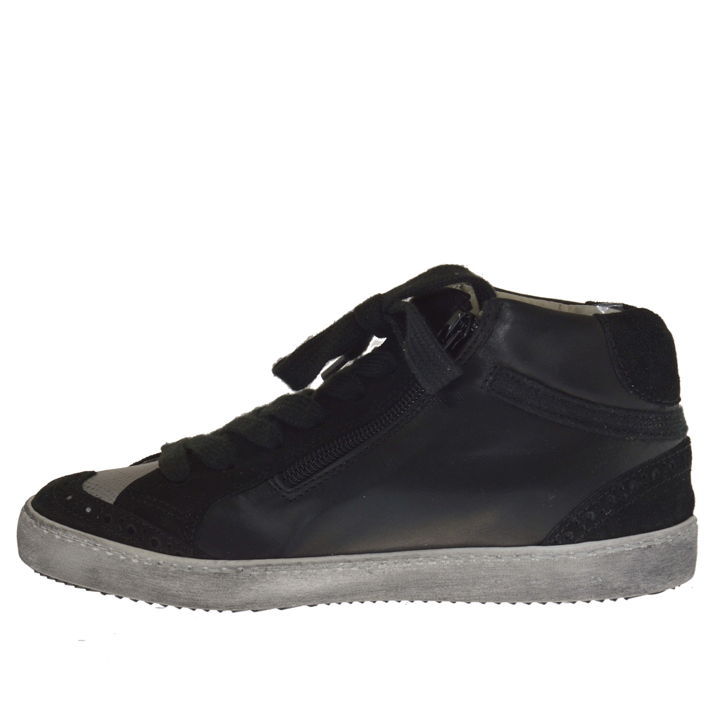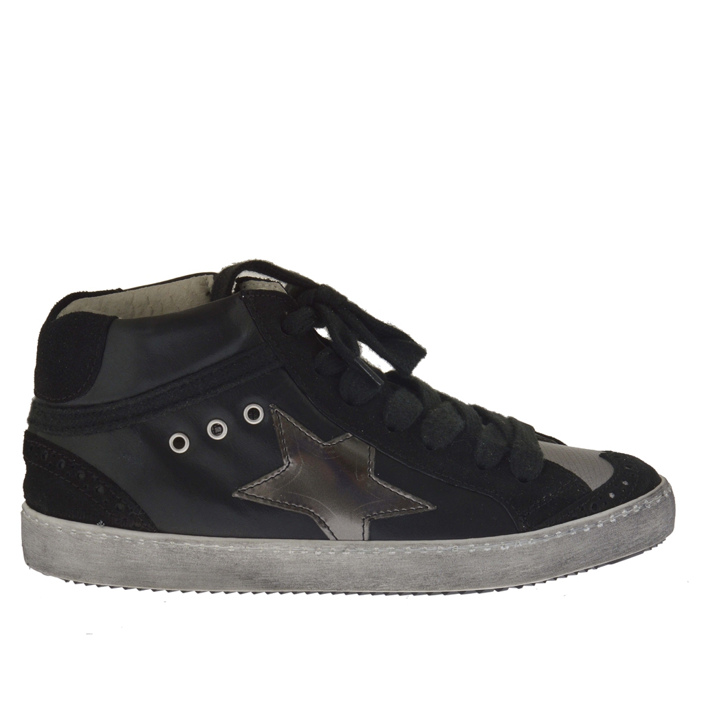 Chaussure pour femmes avec lacets en cuir et daim noir et cuir argent talon compensé 2 - Pointures disponibles:  32