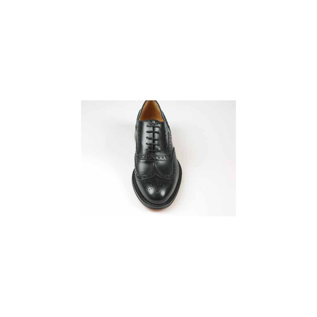 Chaussure richelieu élégant avec bout Brogue pour hommes en cuir noir