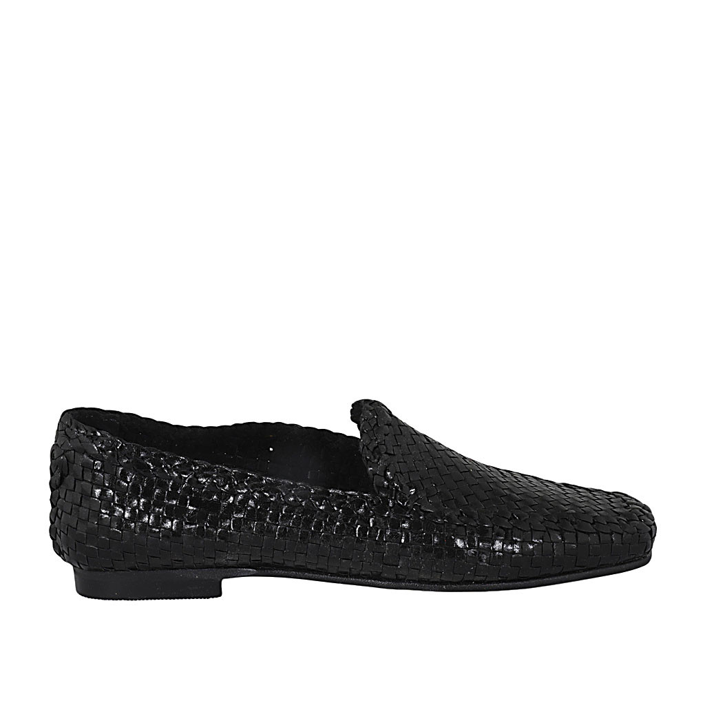 Mocassin pour femmes en cuir tressé noir avec talon 1 - Pointures disponibles:  45