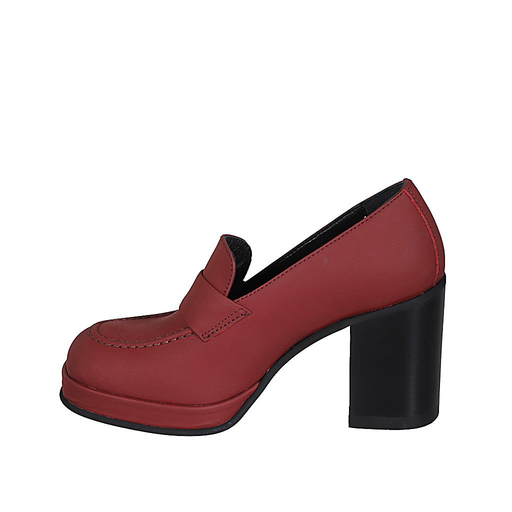 Mocassin pour femmes en cuir rouge opaque avec plateau talon 9