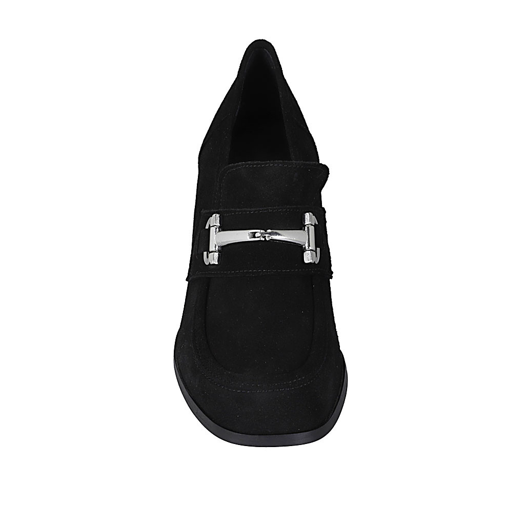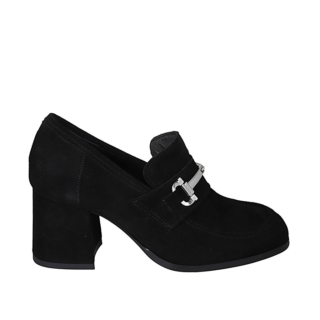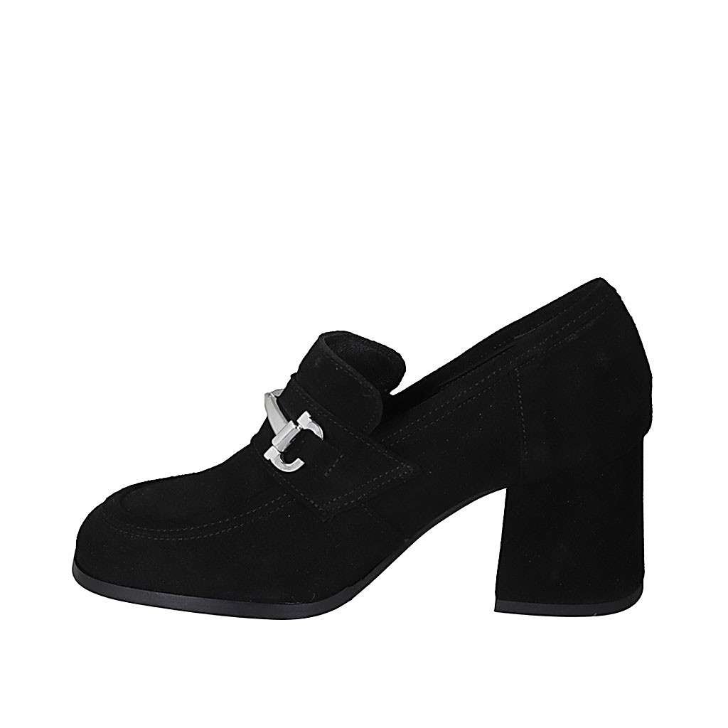 Chaussure avec lacets en daim perforé gris talon compensé 1