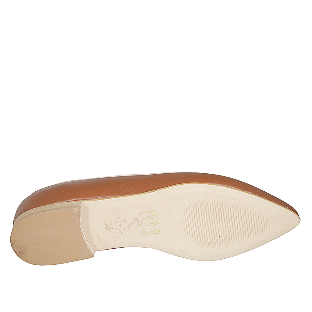 Mocasin à bout pointu pour femmes en cuir cognac avec talon 2 - Pointures disponibles:  42, 44