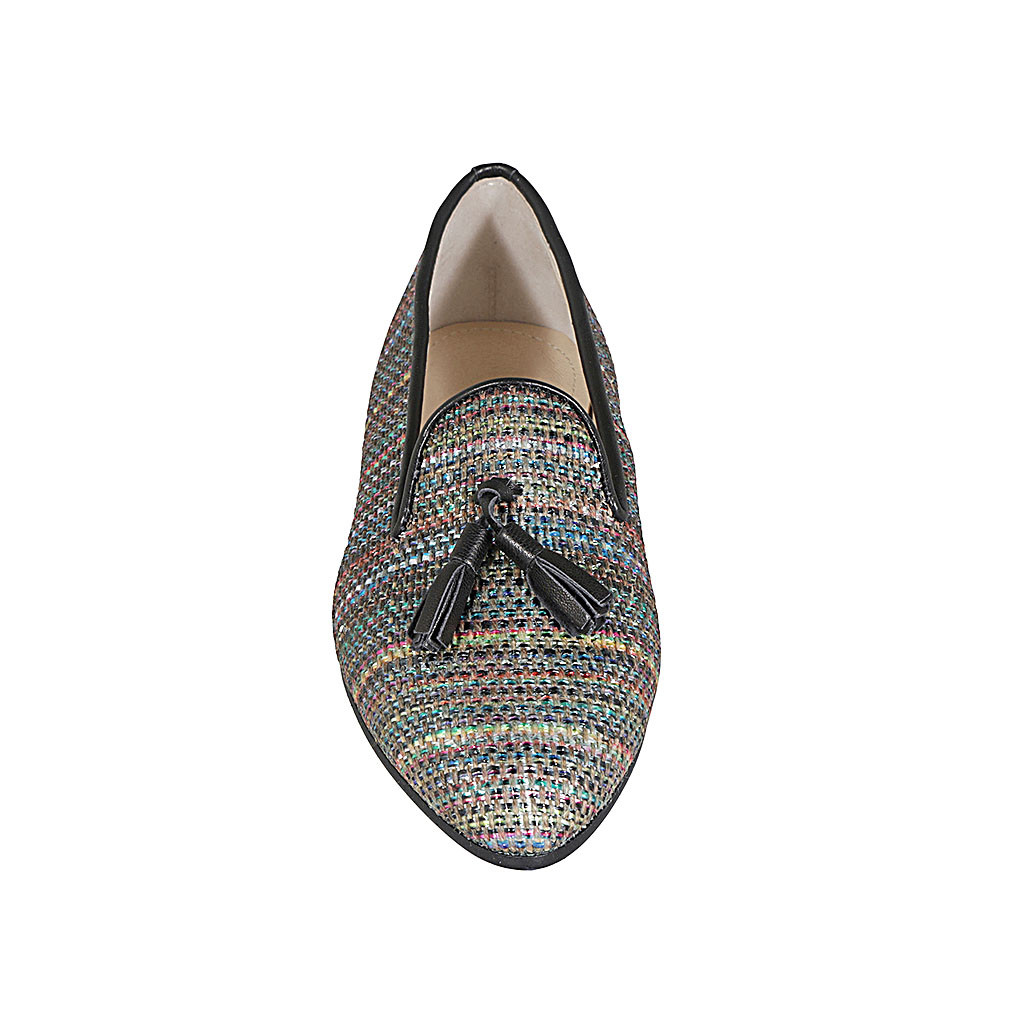 Mocassin pour femmes avec glands en cuir noir et tissu tressé multicouleur talon 2 - Pointures disponibles:  42, 44