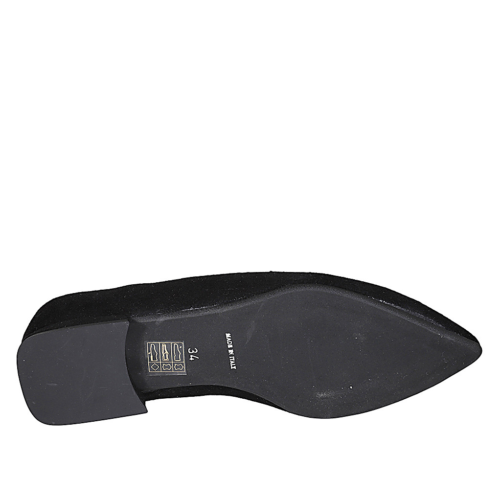 Mocasin à bout pointu pour femmes en daim noir et tacheté avec talon 1 - Pointures disponibles:  33, 35, 42, 43, 44, 45