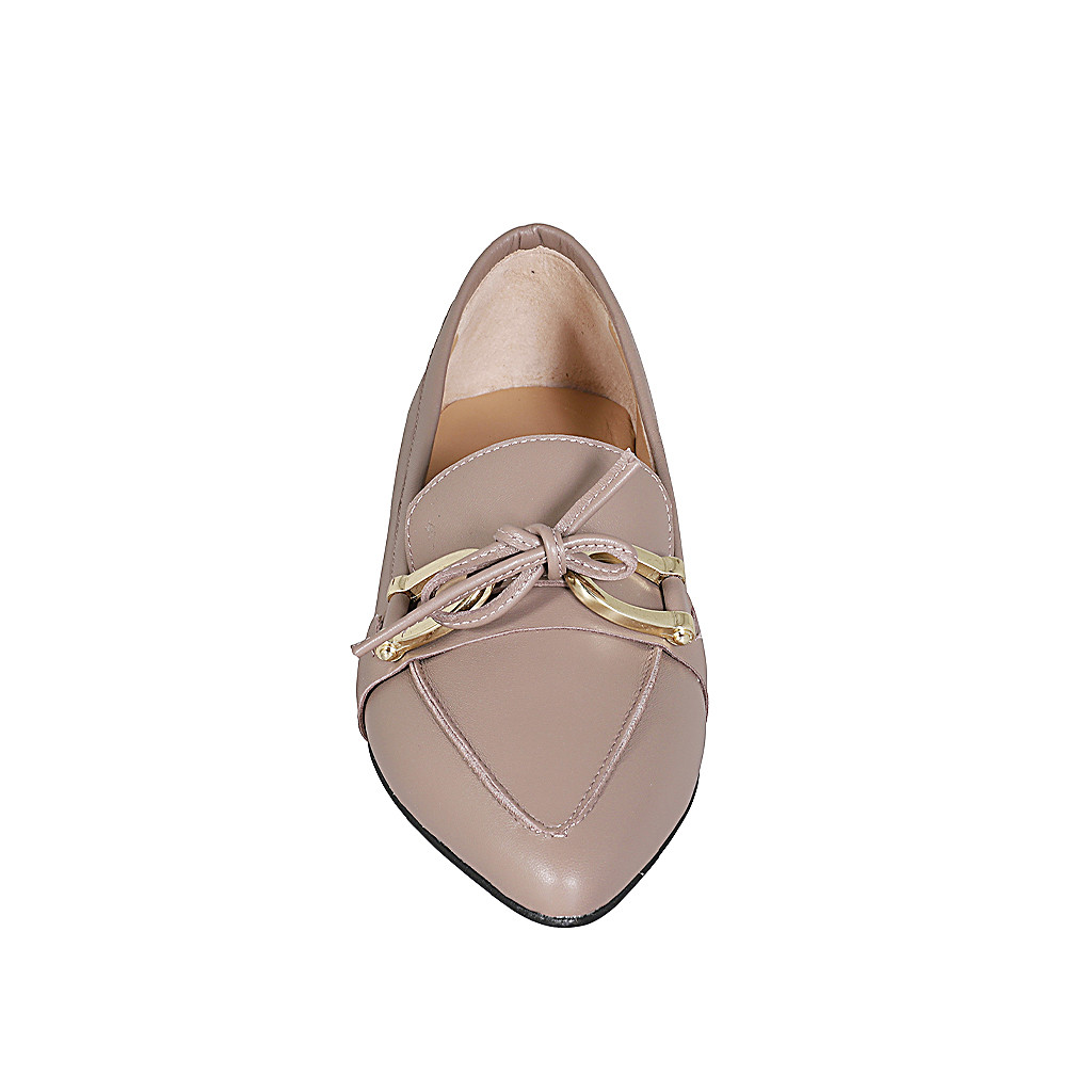 Mocassin à bout pointu pour femmes en cuir gris tourterelle avec accessoire et arc talon 1 - Pointures disponibles:  35, 42, 45
