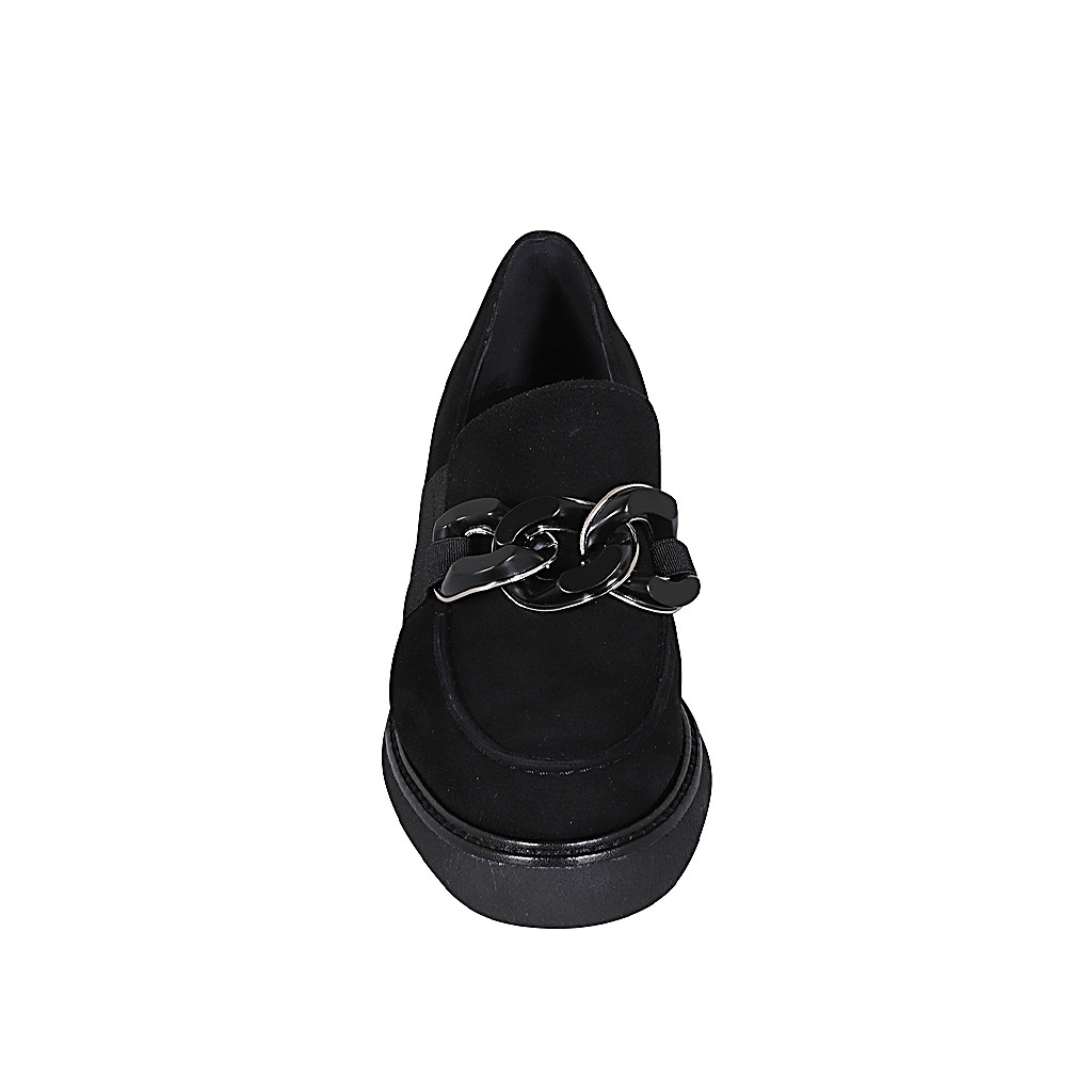 Mocassin pour femmes avec chaîne et elastique en daim noir talon 4 - Pointures disponibles:  33, 45