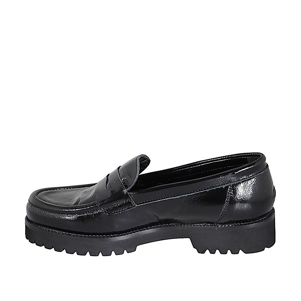 Mocassin pour femmes en cuir verni noir talon 3 - Pointures disponibles:  32, 33, 34, 35, 42, 43, 44, 45, 46, 47
