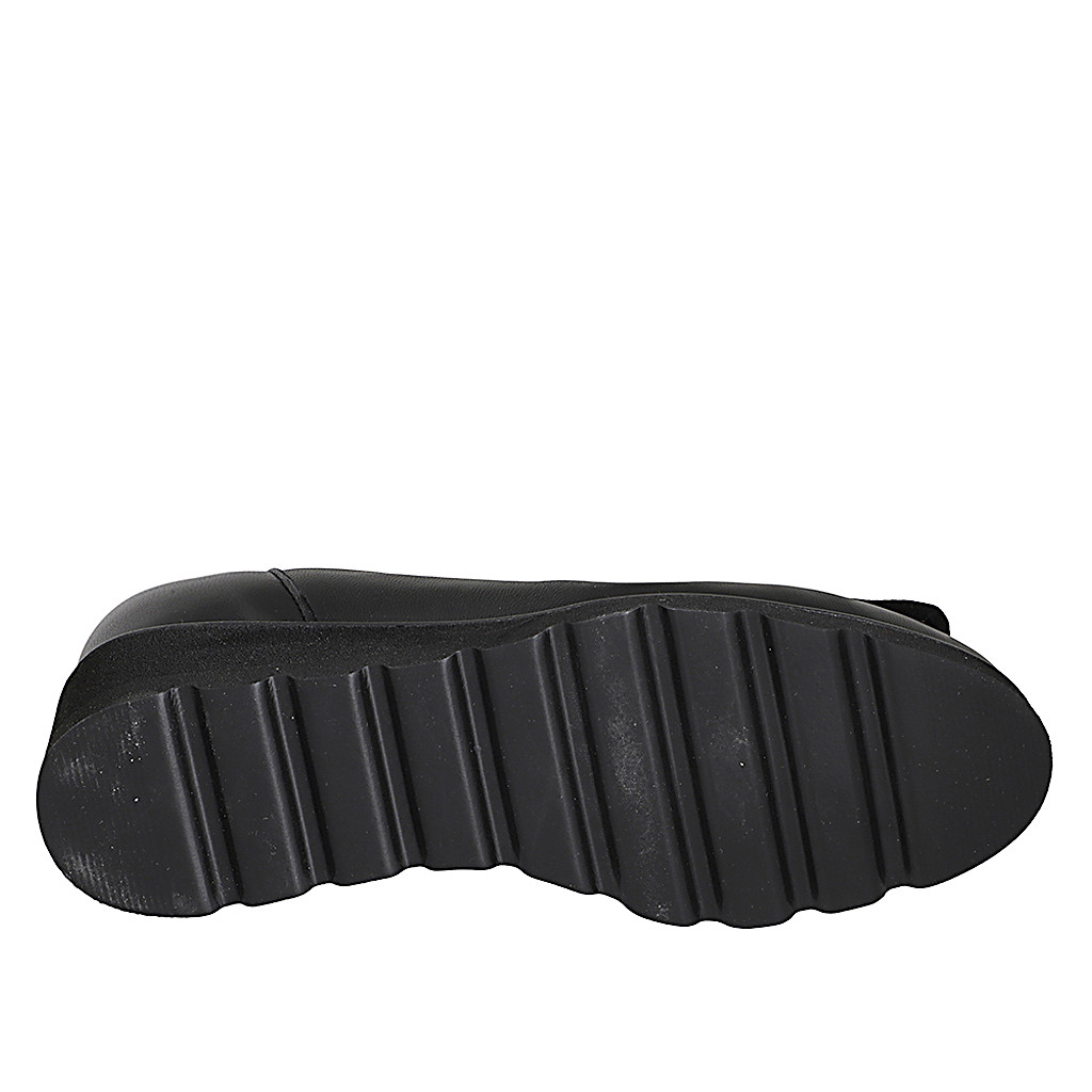Escarpin pour femme avec semelle intérieure amovible en cuir noir et accessoire en daim talon compensé de 4