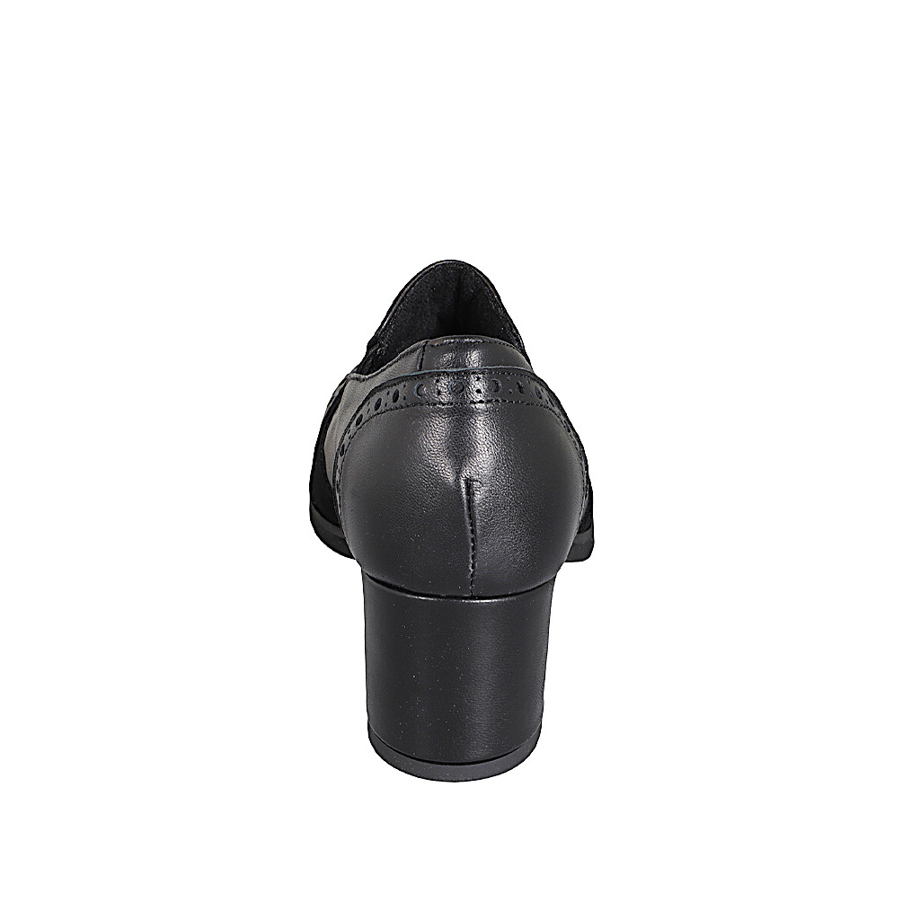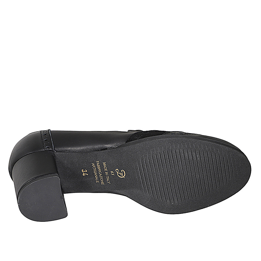 Chaussure élégant pour femme avec elastiques, semelle amovible et bout golf en cuir et daim noir talon 5
