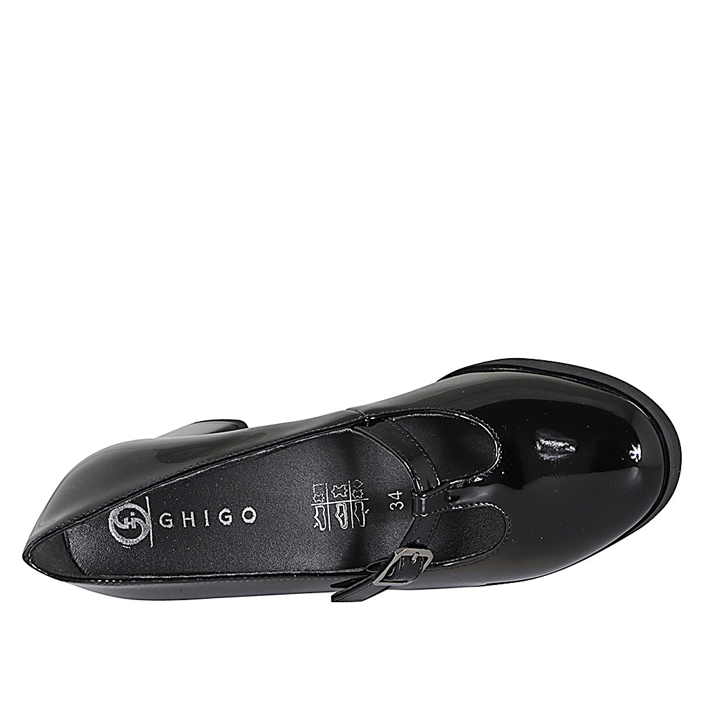 Sandale pour femmes avec courroie, plateforme et strass en cuir noir avec talon compensé 9