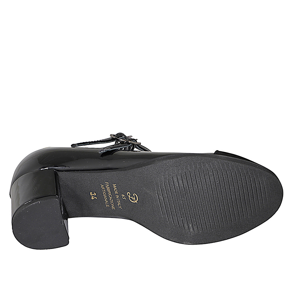 Mary Jane pour femmes avec courroies et semelle intérieure amovible en cuir verni noir et bout en daim noir talon 5 - Pointures disponibles:  32, 33, 34, 35, 42, 43, 44, 45