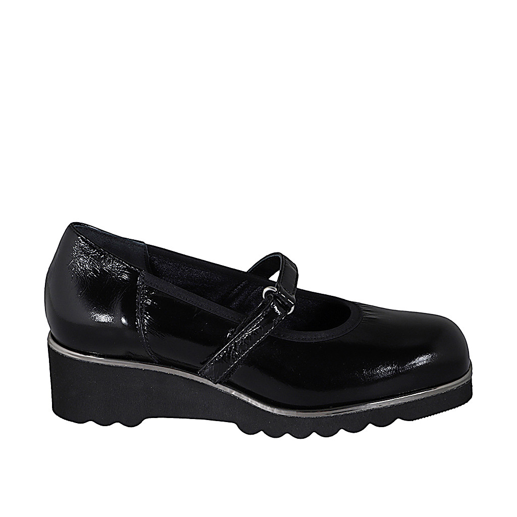 Escarpins Mary Jane pour femme en verni noir avec semelle intérieure amovible talon compensé 4
