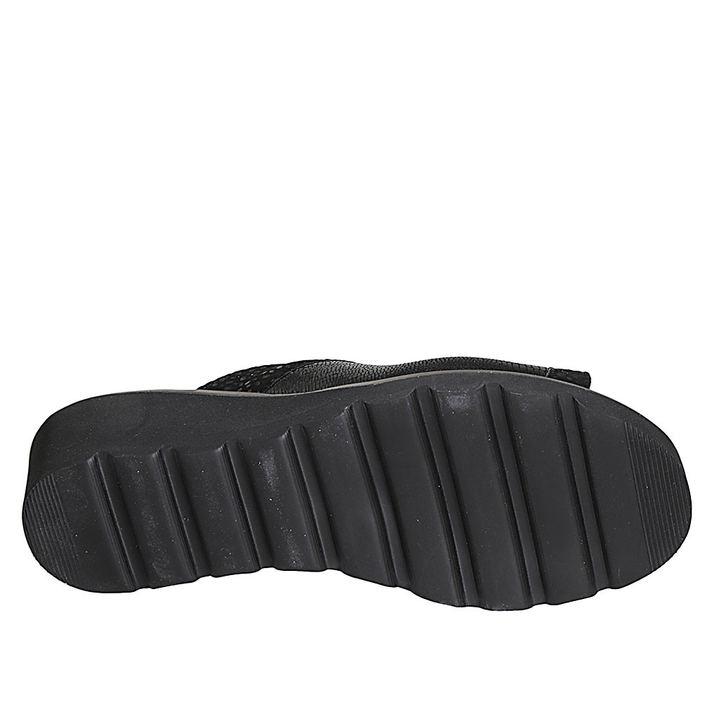 Mule pour femmes en cuir imprimé et daim imprimé noir talon compensé 4 - Pointures disponibles:  42, 43