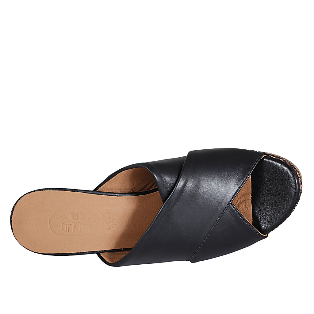 Chaussure ouverte pour femmes avec courroie à T en cuir noir talon 8