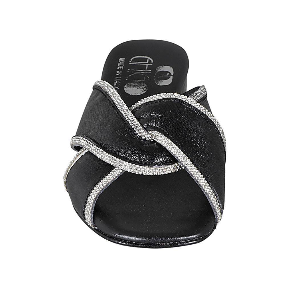 Mule avec strass pour femmes en cuir noir talon 2 - Pointures disponibles:  32, 42
