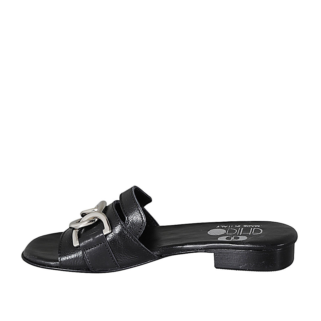Mule avec chaîne en cuir noir talon 2 - Pointures disponibles:  32