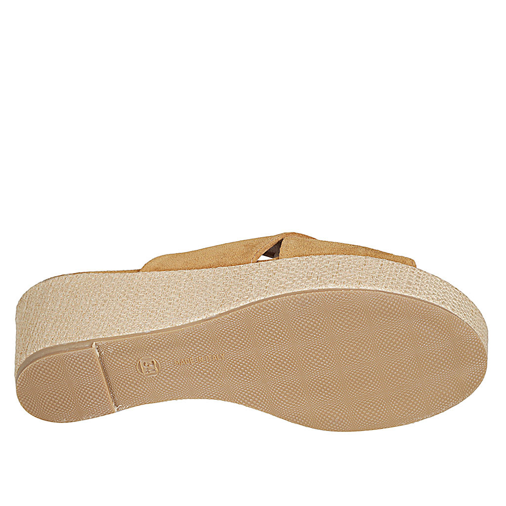Mule pour femmes en daim cognac avec plateforme et talon compensé tressé 6 - Pointures disponibles:  42, 43