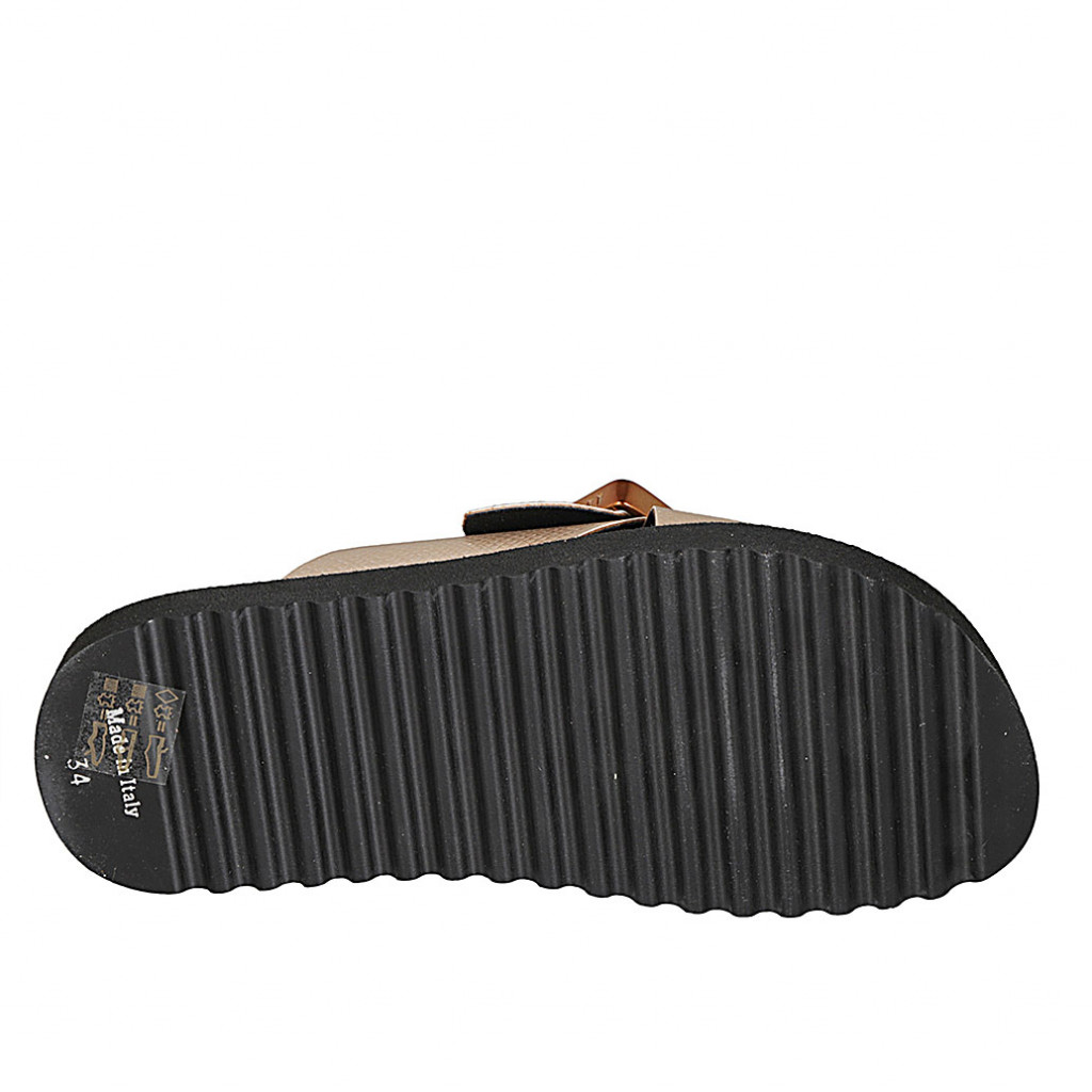 Mule pour femmes avec boucle et bandes croisées en cuir lamé rose clair talon compensé 3 - Pointures disponibles:  42, 43
