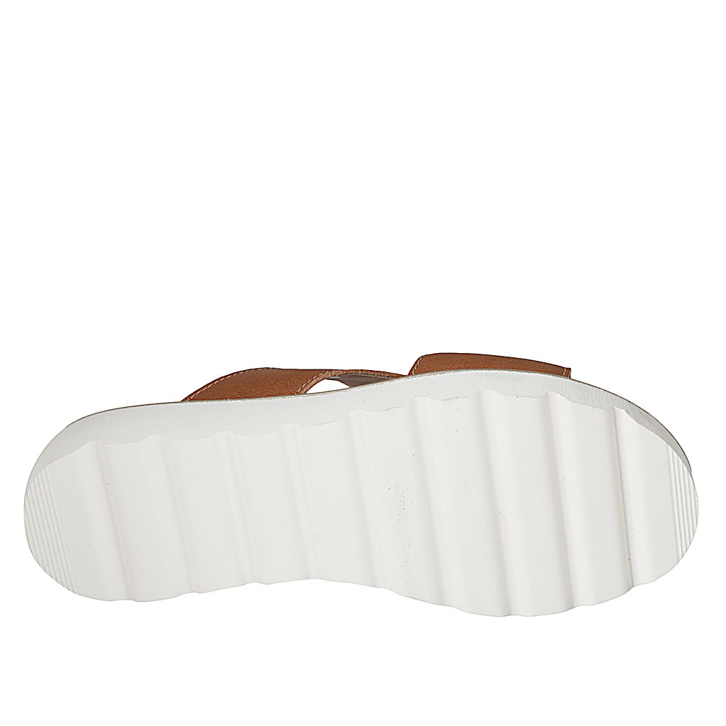 Mule pour femmes en cuir cognac avec talon compensé 3 - Pointures disponibles:  42
