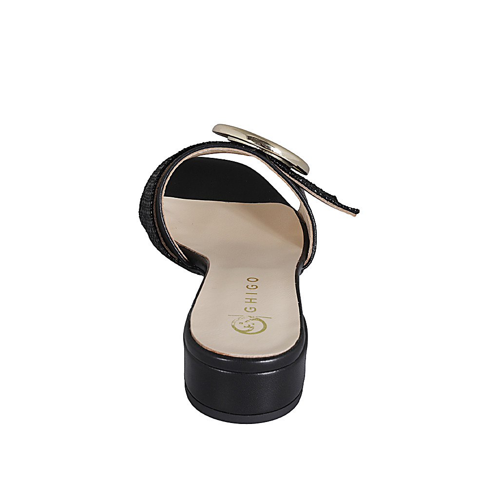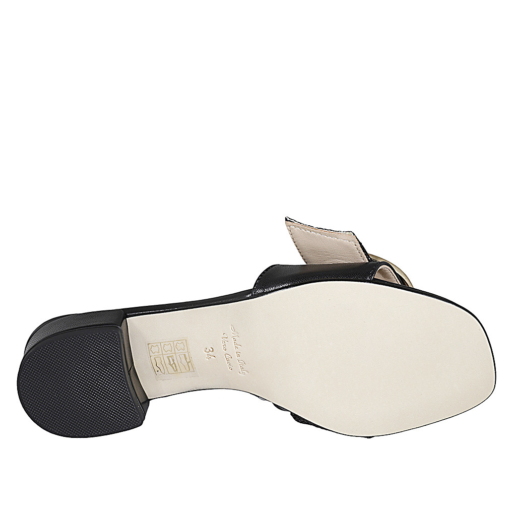 Escarpin pour femmes avec semelle amovible, accessoire et bout droit en cuir et cuir verni noir talon 4