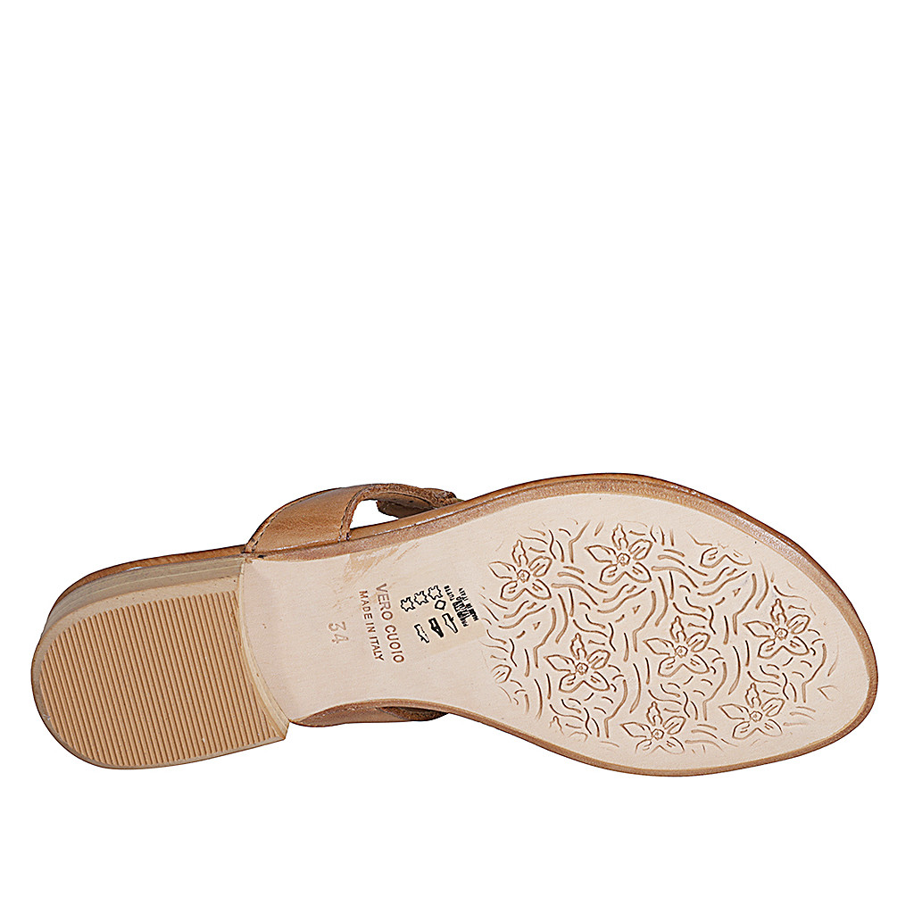 Mule entredoigt avec accessoire pour femmes en cuir cognac talon 2