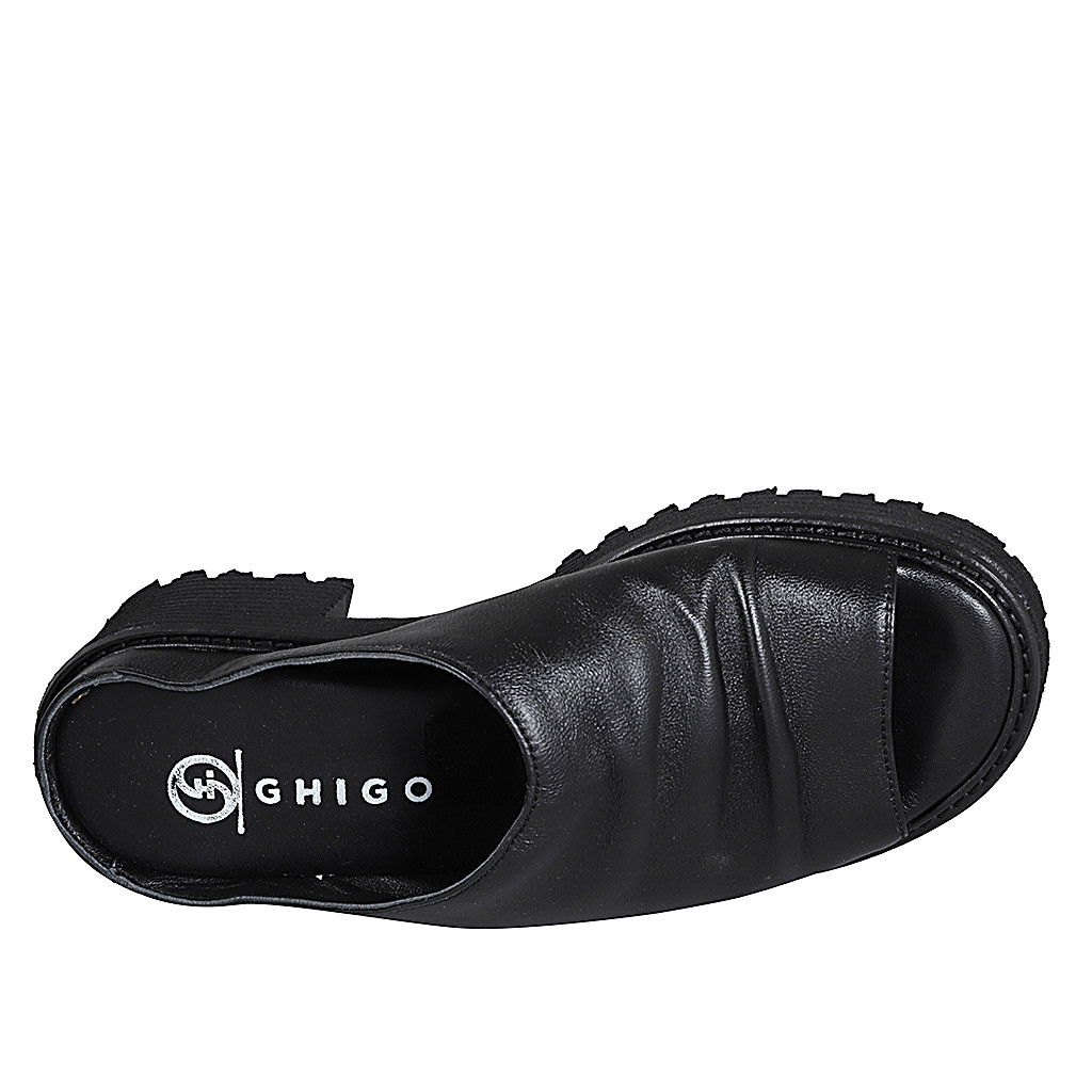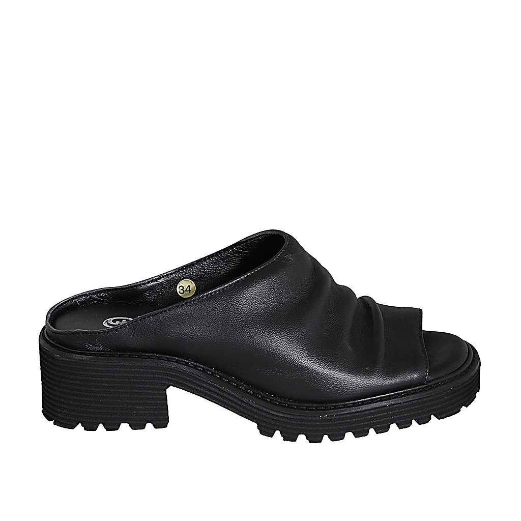 Chaussure derby à lacets avec bout golf pour femmes en cuir noir talon 6