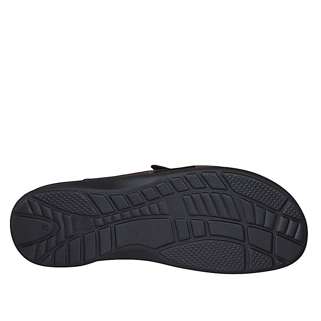 Sandale pour femmes en cuir marron avec fermetures velcro et perles avec talon compensé 7