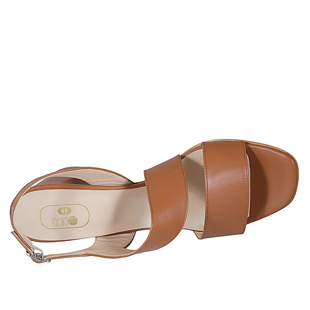 Sandale pour femmes en cuir cognac talon 8 - Pointures disponibles:  42, 43