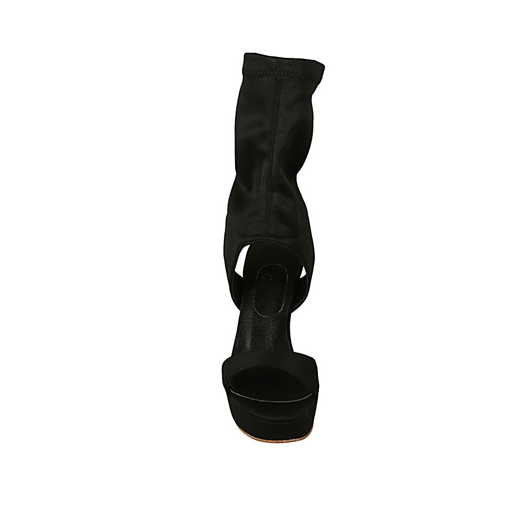 Sandale pour femmes avec plateforme en tissu elastique noir talon 11 - Pointures disponibles:  34