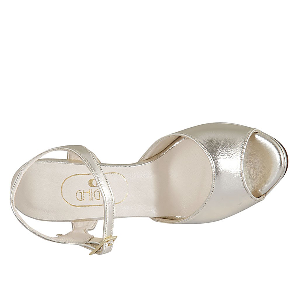 Sandale pour femmes avec courroie et plateforme en cuir lamé platine talon 9 - Pointures disponibles:  42