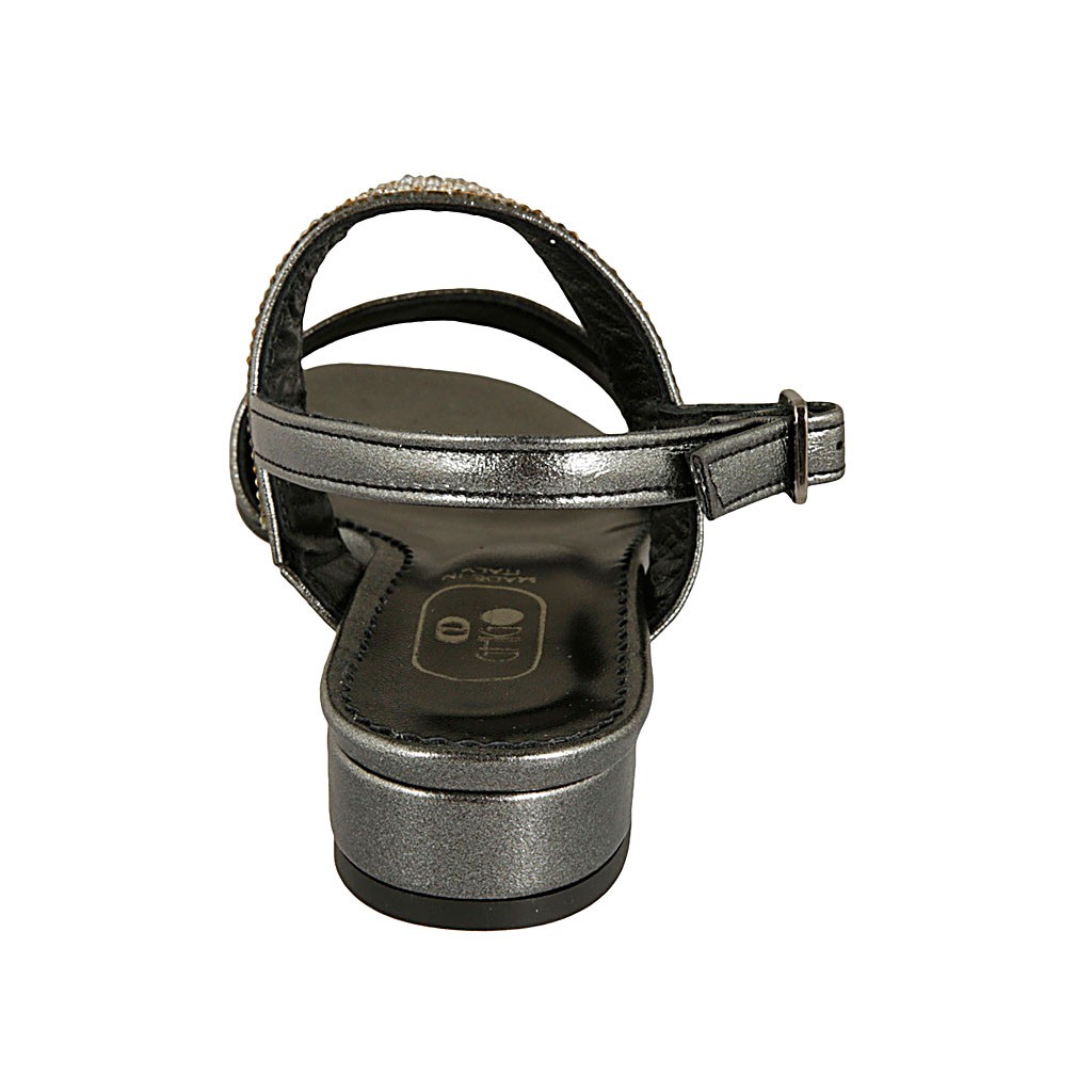 Sandale pour femmes en cuir lamé gris avec strass multicouleurs talon 2 - Pointures disponibles:  32