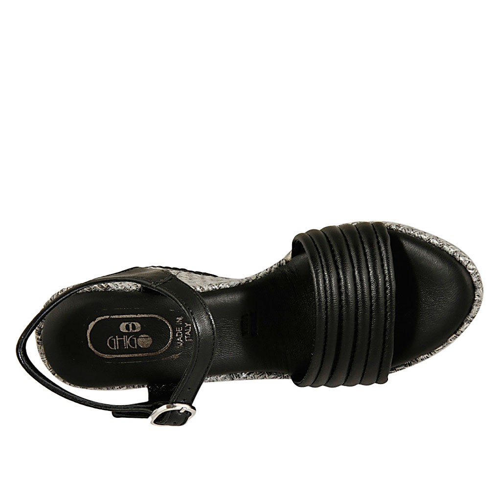 Mule ouvert pour femmes en cuir perforé cognac avec plateforme et talon compensé 9