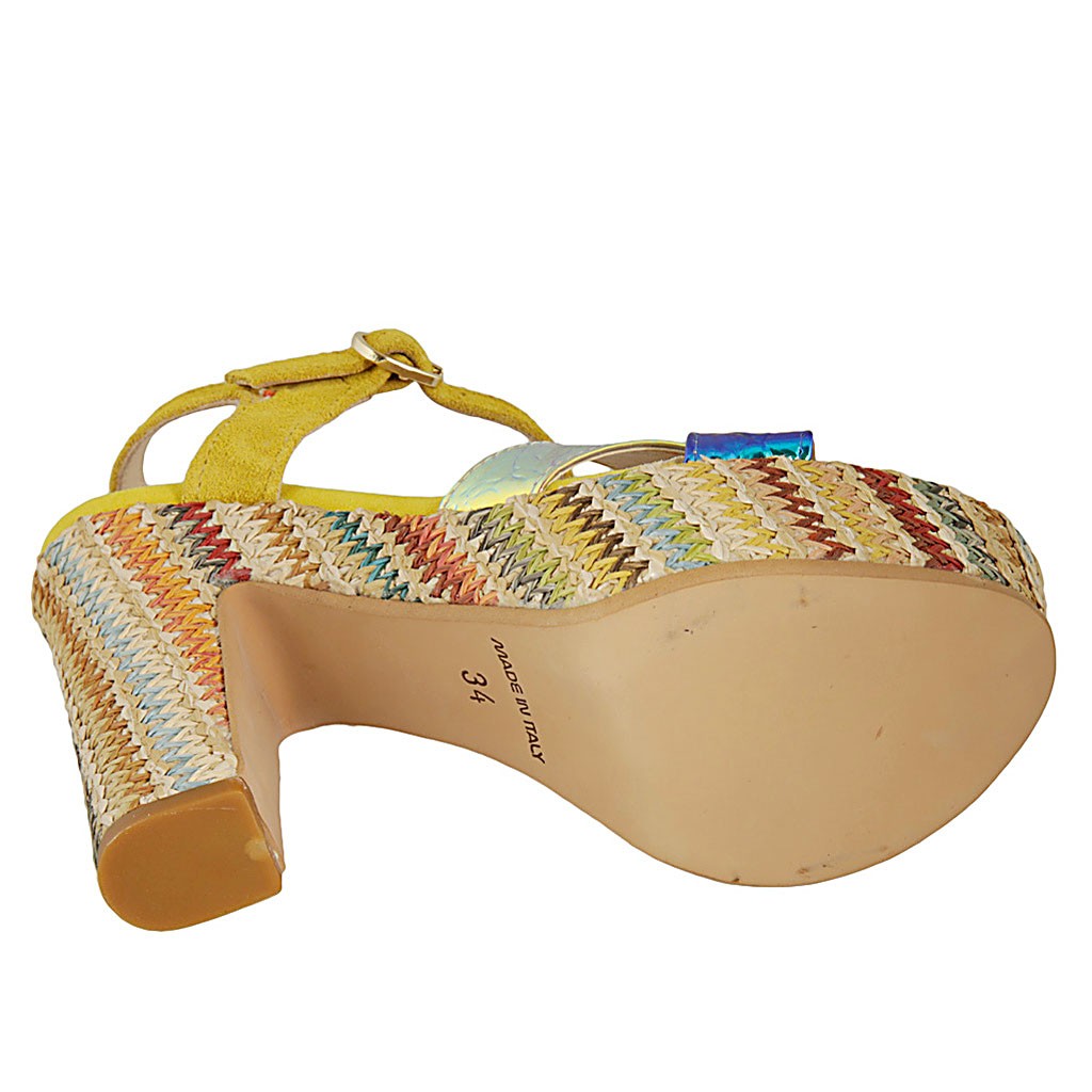Sandale pour femmes avec courroie et plateforme en daim jaune, cuir verni holographique et tissu multicouleur talon 12 - Pointures disponibles:  42