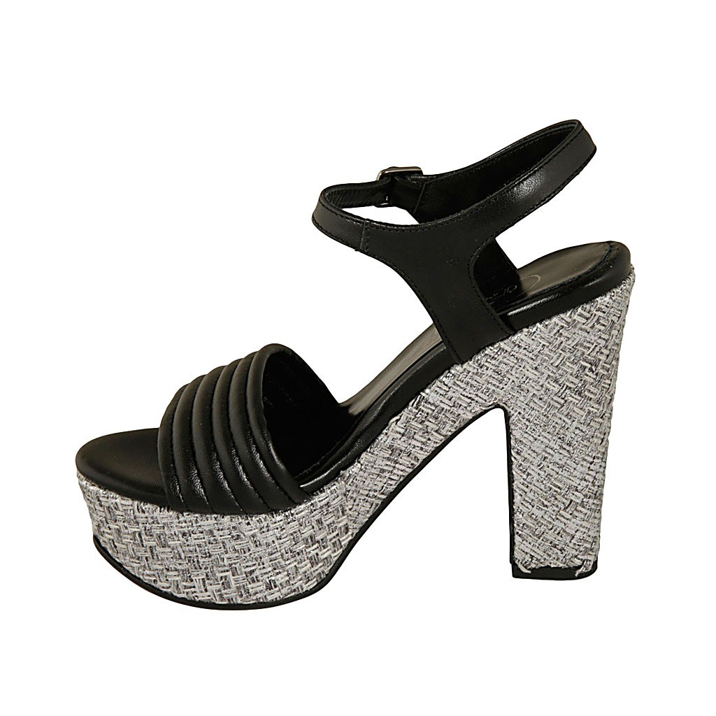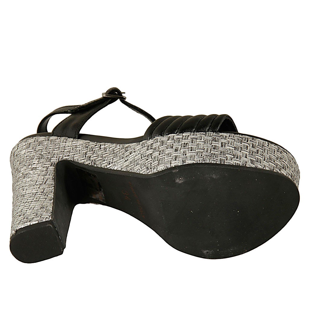 Sandale pour femmes en cuir noir avec elastique talon 2