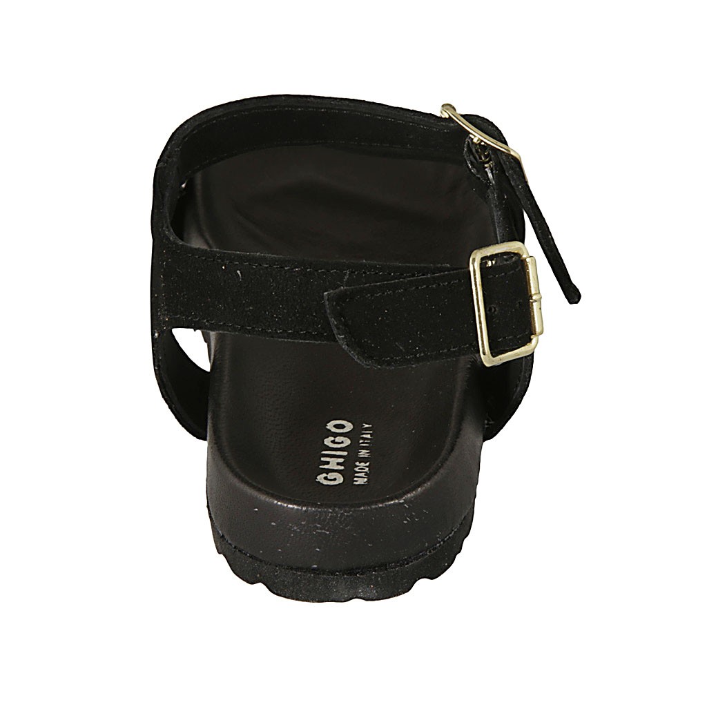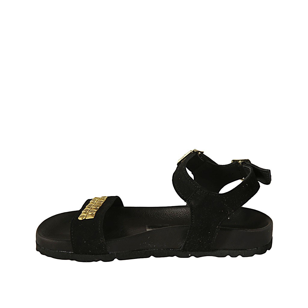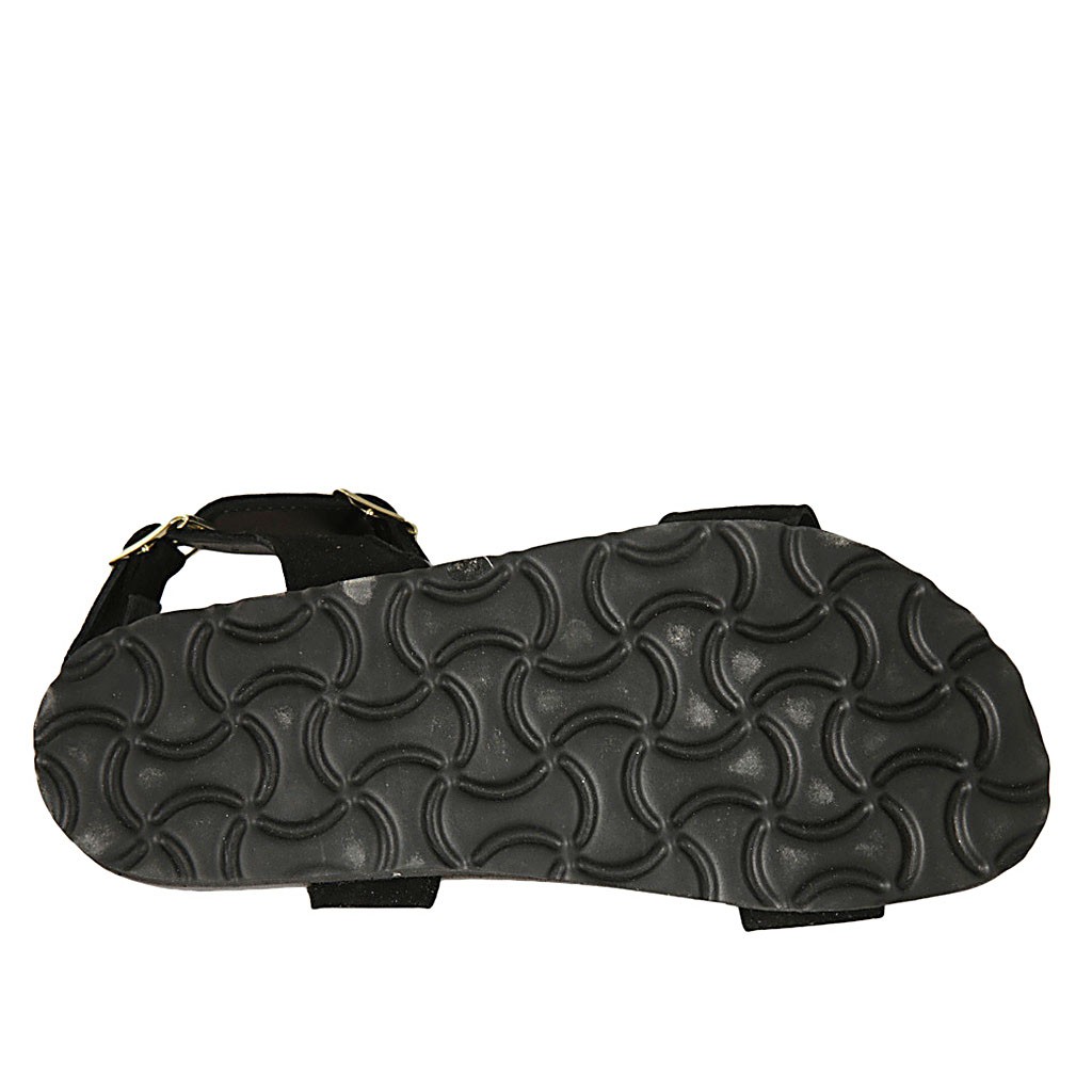 Sandale pour femmes en daim noir avec courroie, boucle, accessoire et talon compensé 2 - Pointures disponibles:  32