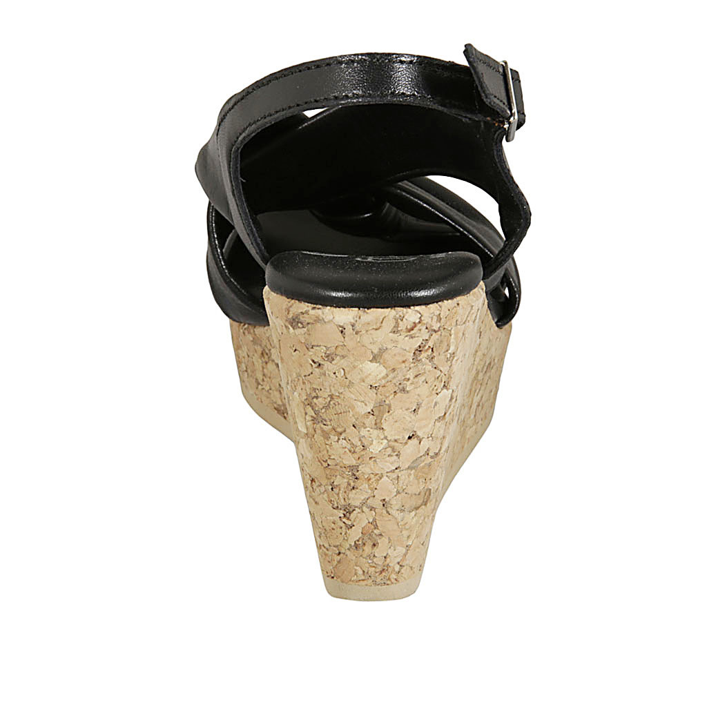 Sandale pour femmes avec courroie et plateforme en cuir noir avec talon compensé tressé 12
