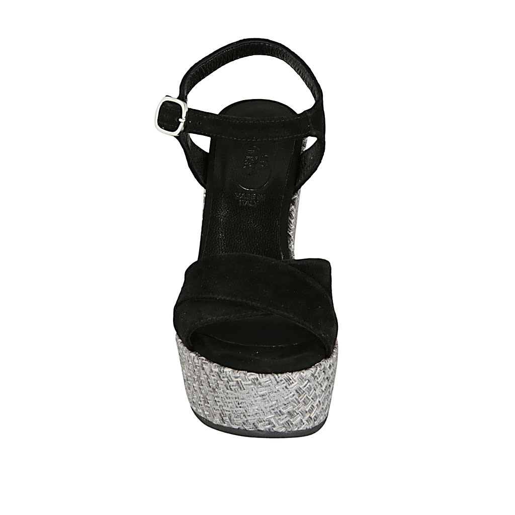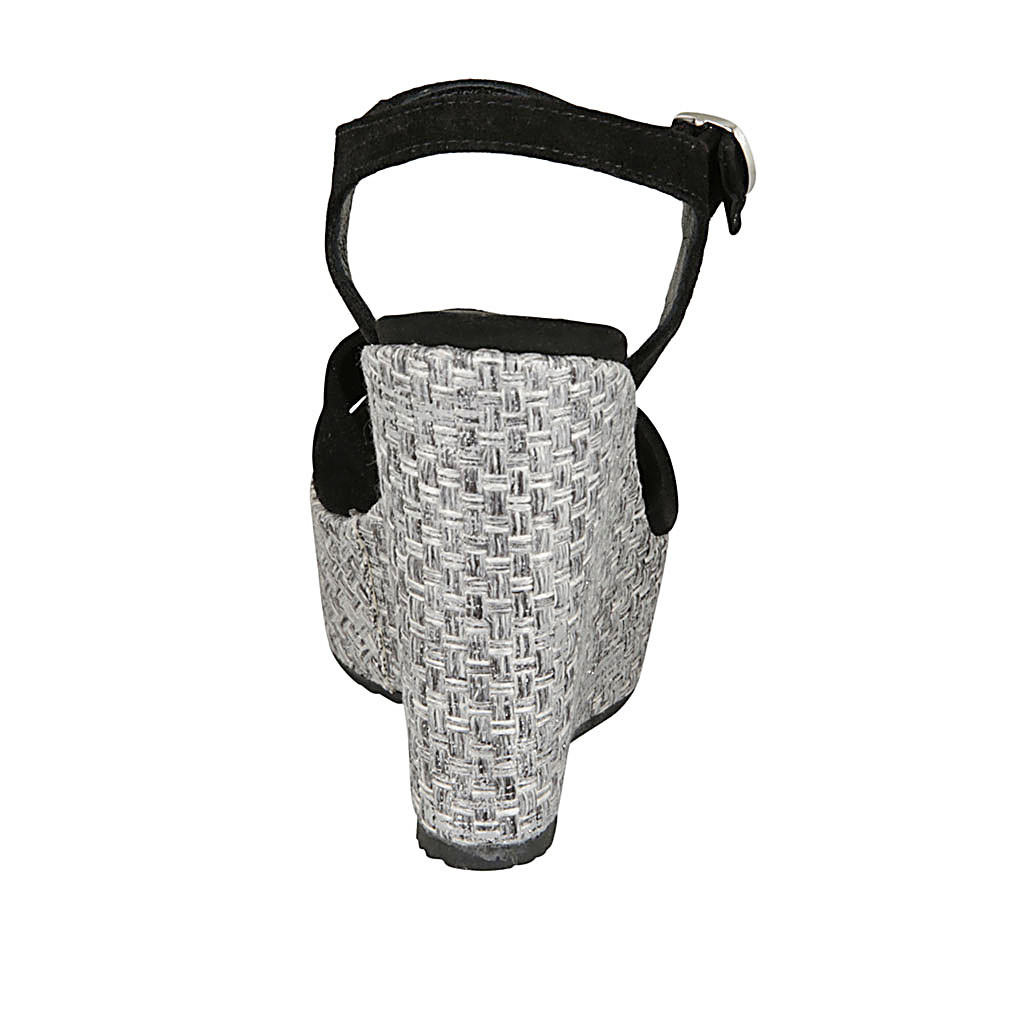 Sandale pour femmes avec courroie et plateforme en daim noir et tissu gris argent talon compensé 12 - Pointures disponibles:  42