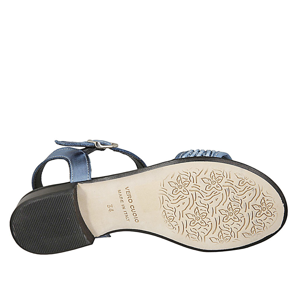 Sandale pour femmes en cuir rose et lamé cuivre talon 3