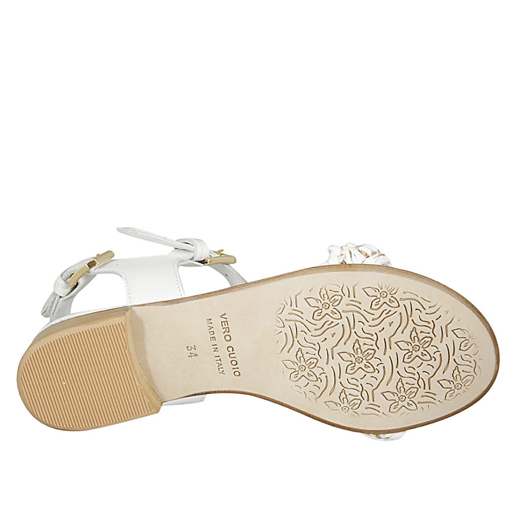 Sandale pour femmes en cuir blanc et raphia tressé blanc, platine et cuivre avec courroies et talon 2 - Pointures disponibles:  33