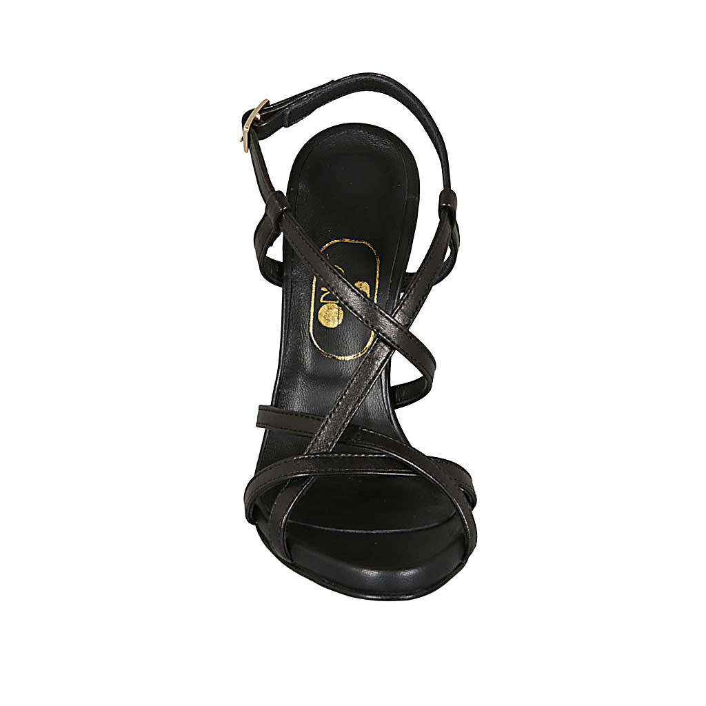 Sandale pour femmes en cuir noir avec courroie croisé talon 11
