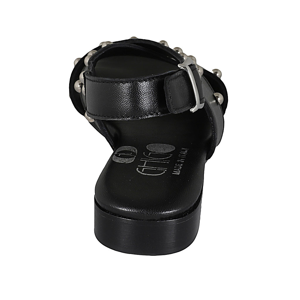 Sandale pour femmes avec goujons en cuir noir talon 2 - Pointures disponibles:  32, 33