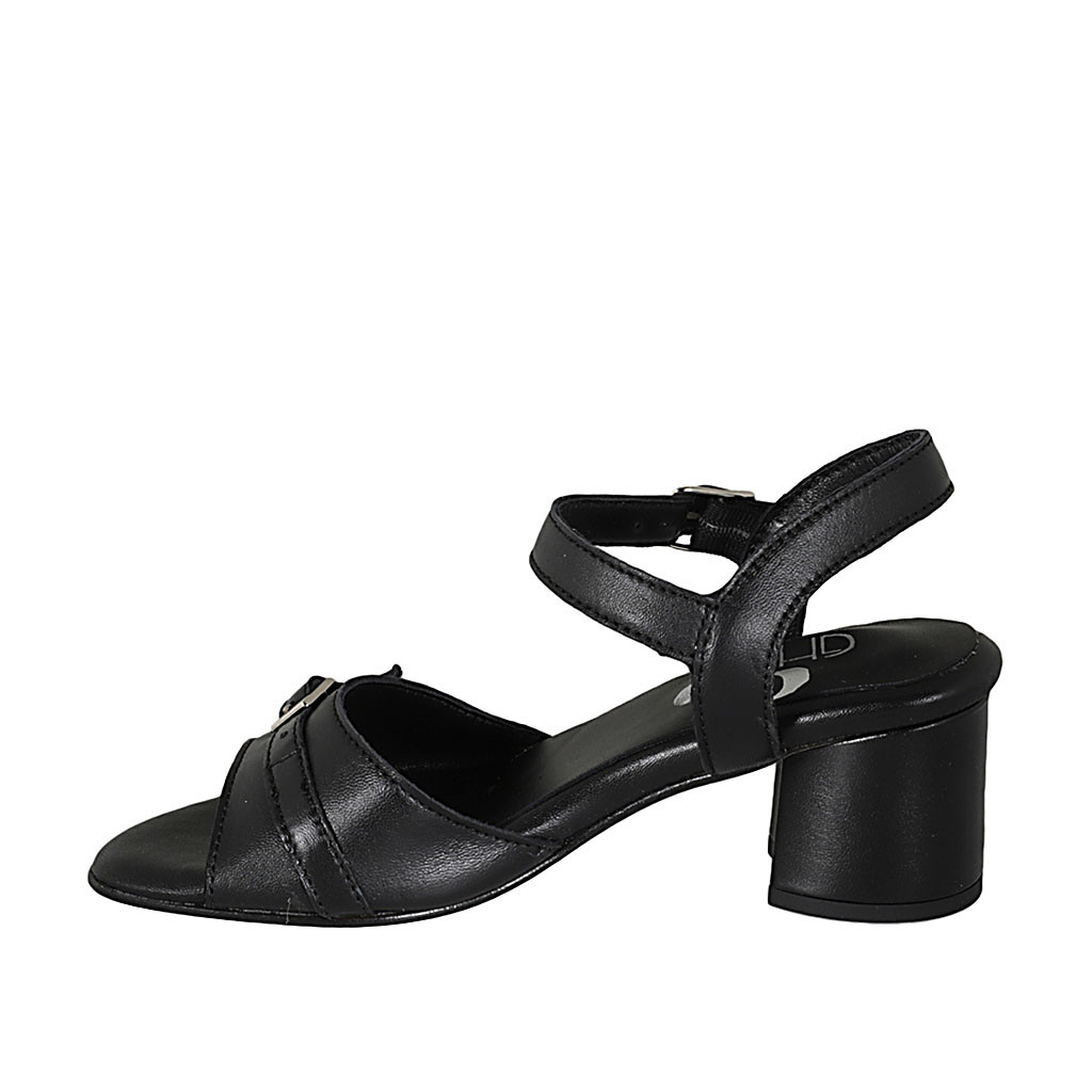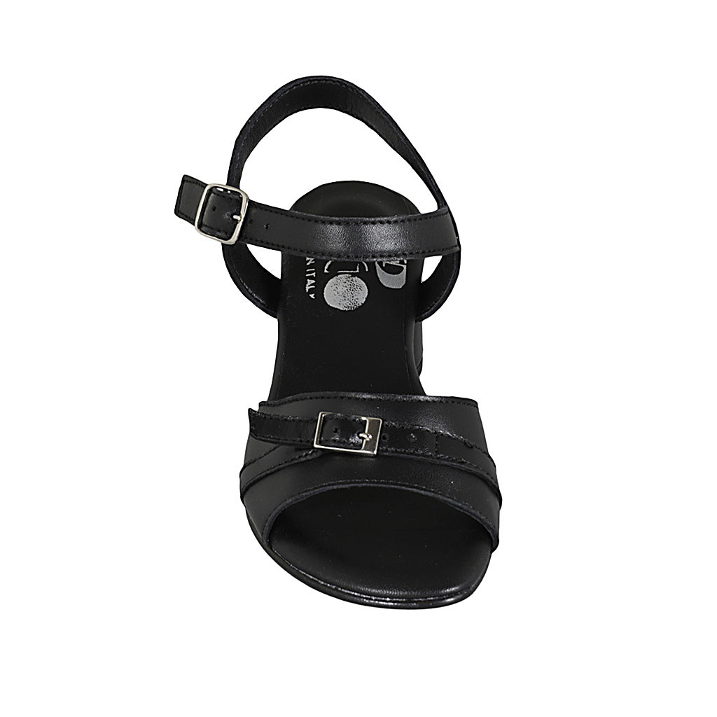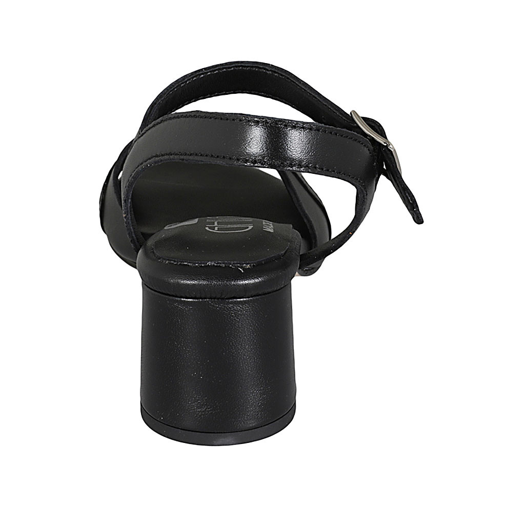 Chaussure ouverte pour femmes avec courroie en cuir bleu foncé et cuir imprimé bleu clair talon 7