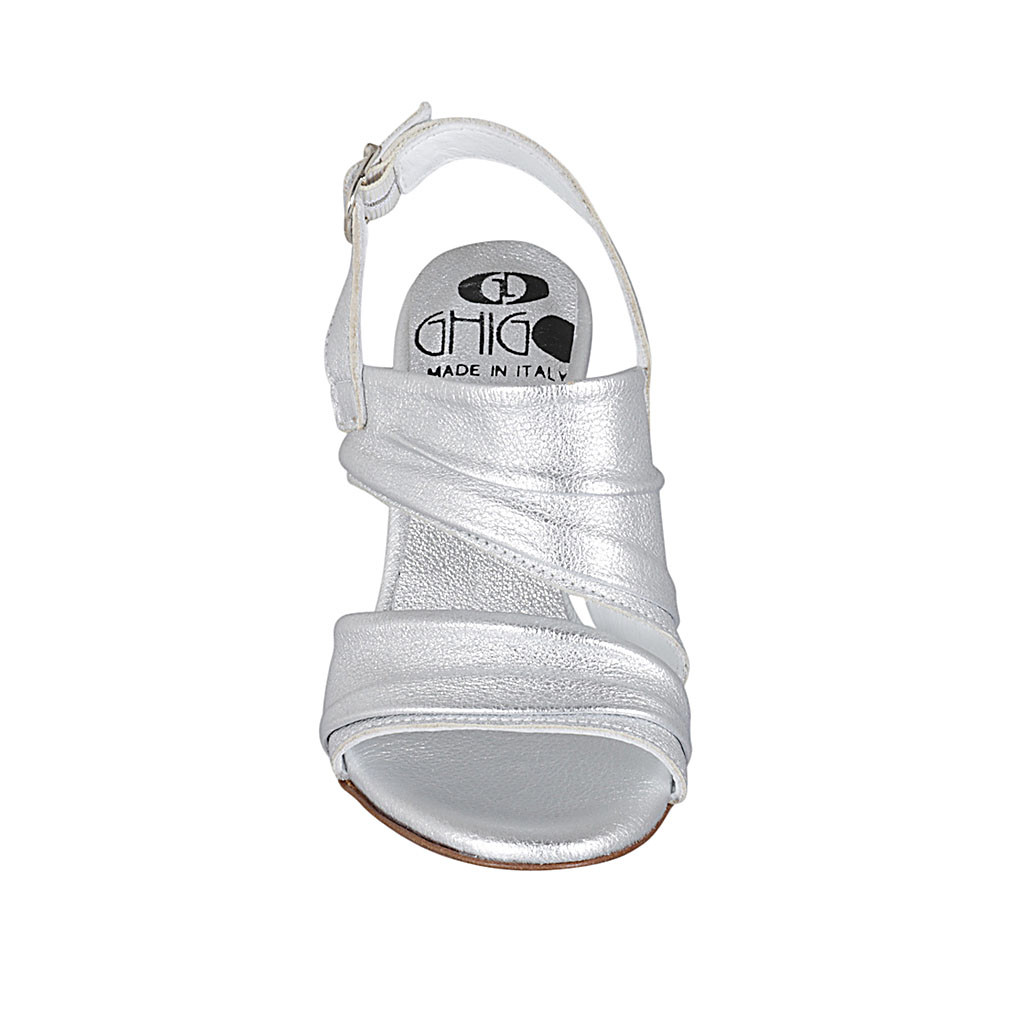 Sandale entredoigt pour femmes en cuir lamé platine avec strass et courroie talon 3