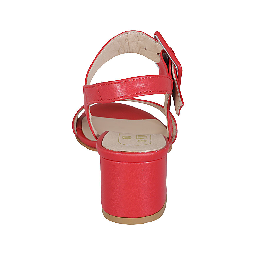 Sandale pour femmes en cuir imprimé orange avec courroie talon compensé 3