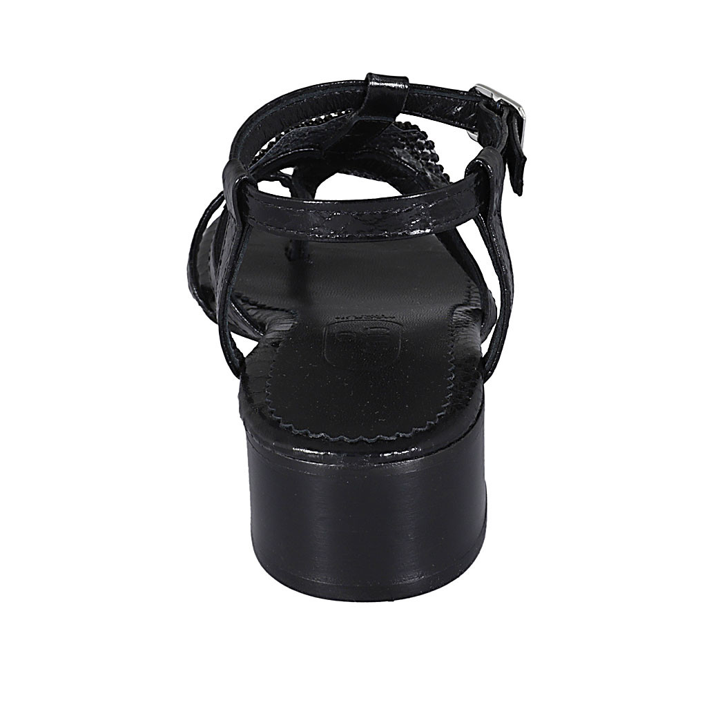 Sandale pour femmes avec courroie et chaîne en cuir cognac talon compensé 9