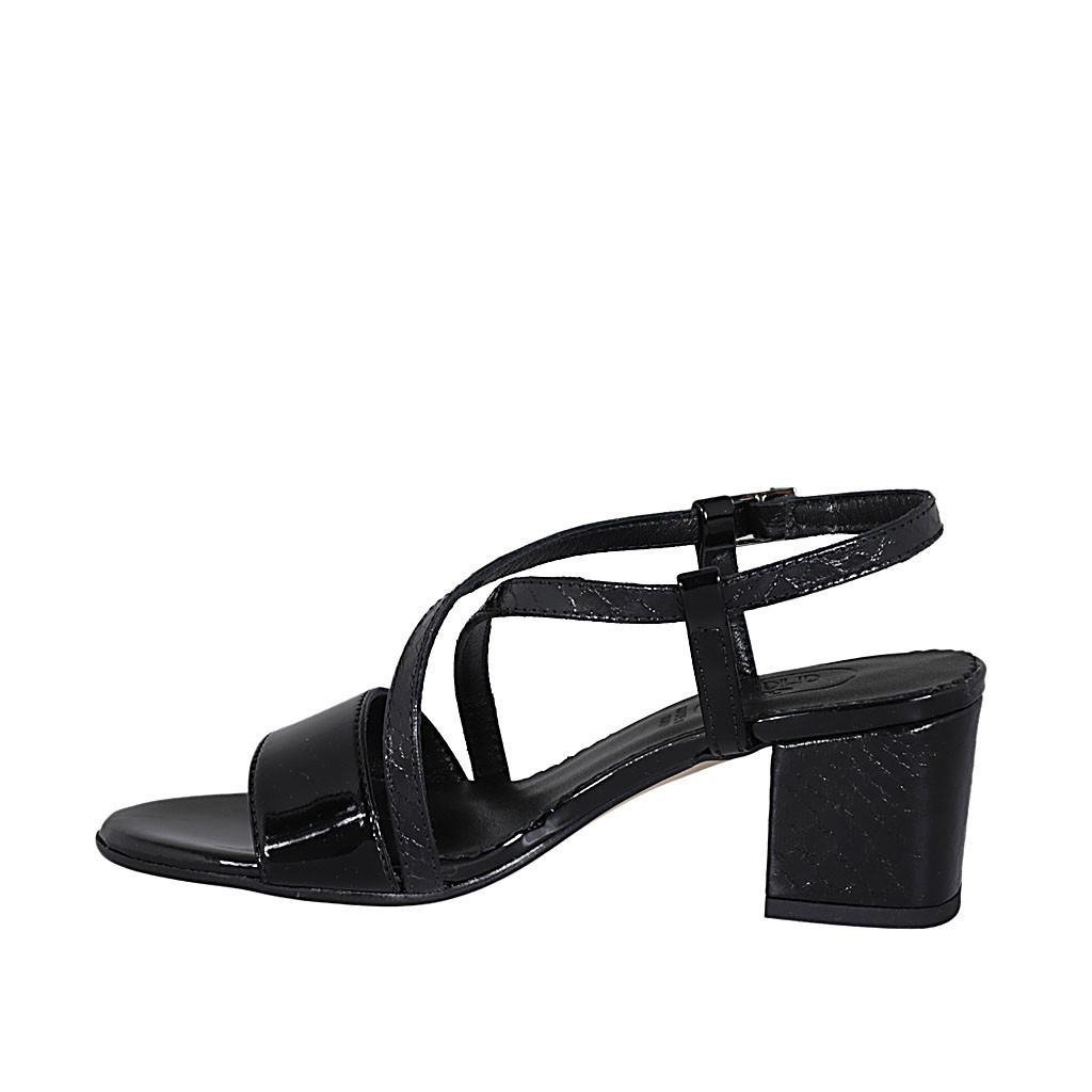 Sandale pour femmes en cuir verni et cuir imprimé noir talon 5 - Pointures disponibles:  31, 43, 46