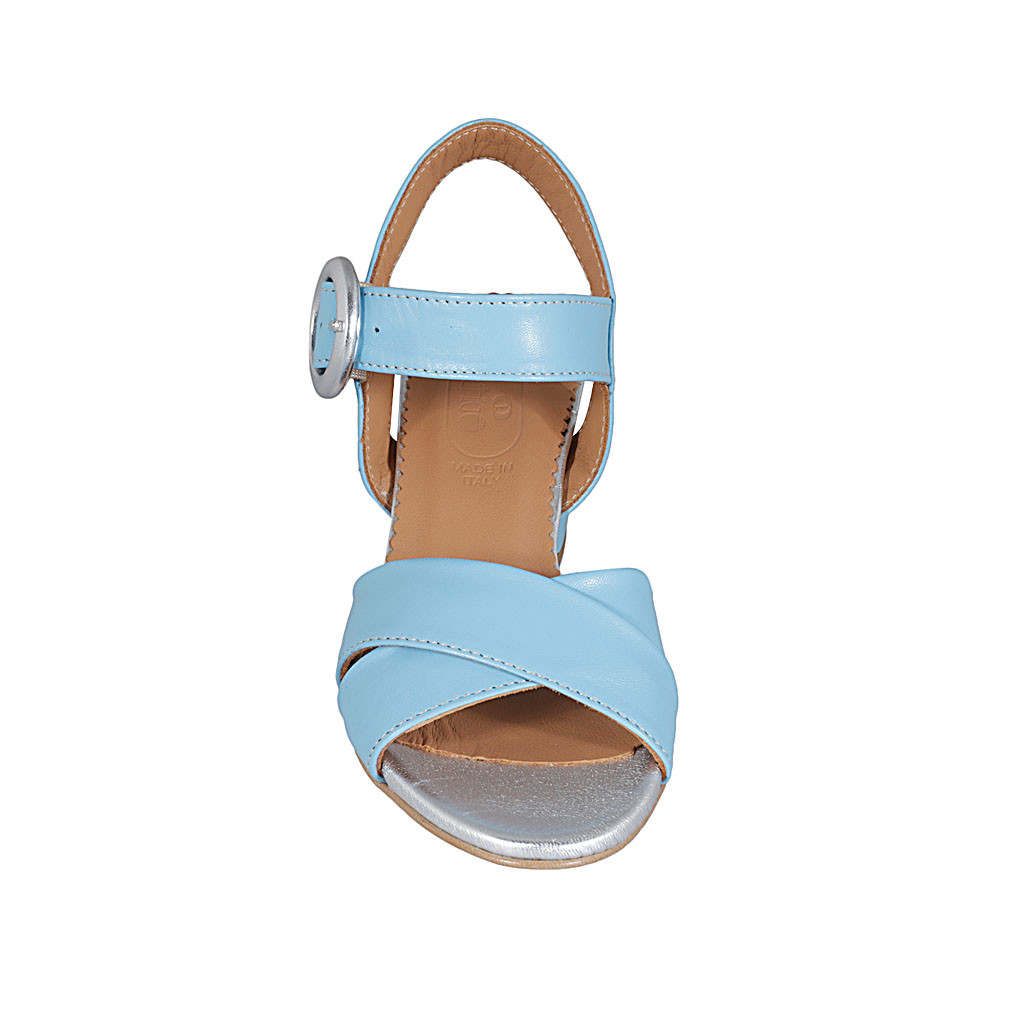 Sandale pour femmes avec courroie en cuir bleu clair talon 5 - Pointures disponibles:  43, 44, 45, 46