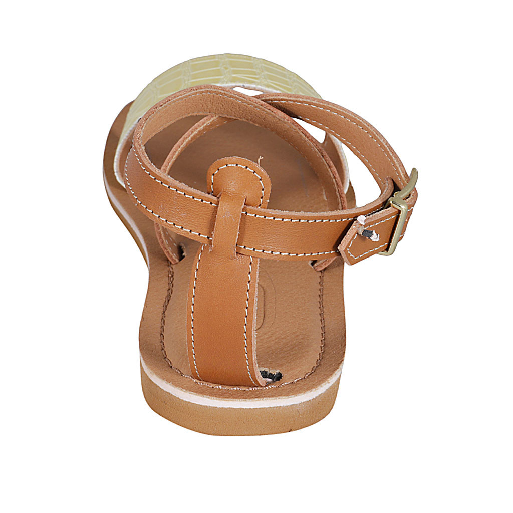Sandale pour femmes avec courroie croisé en cuir cognac et cuir imprimé jaune talon 1 - Pointures disponibles:  32