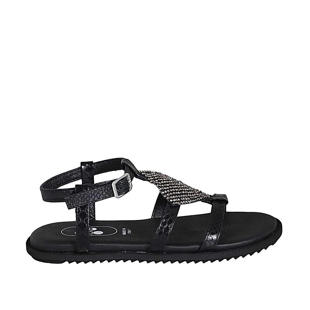 Mary Jane pour femmes avec bout rondu et courroies en cuir noir talon 1